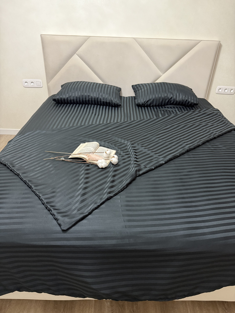 Постільна білизна Страйп Сатин Двоспальний комплект колір Чорний