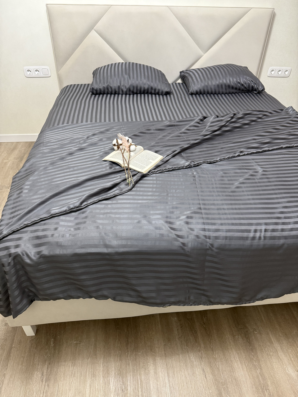 Постільна білизна Страйп Сатин Євро комплект(220х240см) колір Графіт